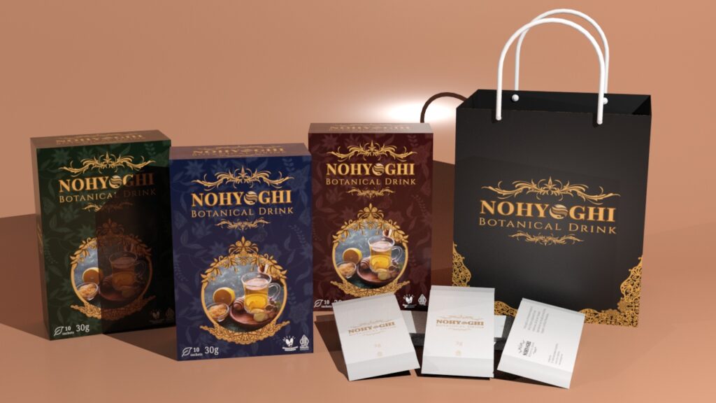 Botanical Spices Drink NOHYOGHI is a natural herbal beverage crafted from Indonesia’s finest botanical ingredients. Each 3-gram sachet contains a premium blend of lemongrass, turmeric, and red ginger, carefully formulated to deliver a perfect harmony of freshness and warmth. Lemongrass provides a refreshing aroma that uplifts the senses, turmeric offers powerful anti-inflammatory and antioxidant benefits, and red ginger adds a spicy yet soothing note that enhances the overall flavor experience.